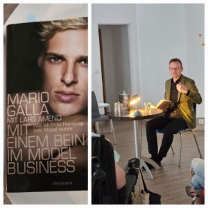 Peter Daniel Forster entschied sich für das Buch „Mit einem Bein im Modell Business“. Das Buch beschreibt die reale Person Mario Galla, der mit einer Beinprothese im knallharten Geschäft des Modell Business für Aufsehen sorgte.